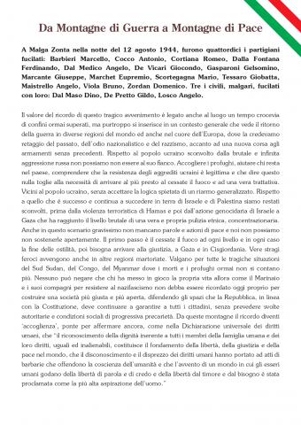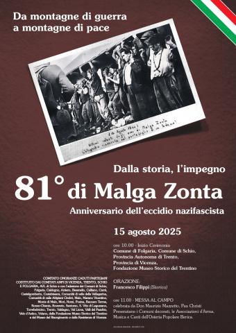 81° anniversario dell'Eccidio nazifascista di Malga Zonta. Cerimonia commemorativa e Messa al campo - venerdì 15 agosto 2025 alle ore 10:00