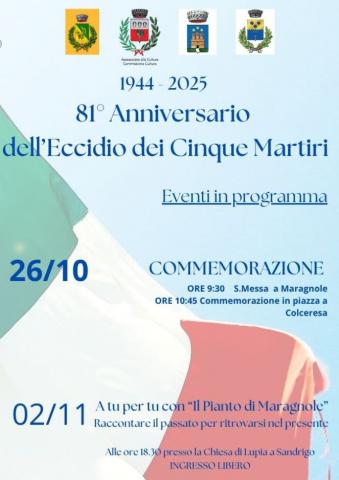 Commemorazione 81° Anniversario dell'Eccidio dei Cinque Martiri di Maragnole - domenica 26 ottobre 2025 a Maragnole di Breganze e Mason di Colceresa