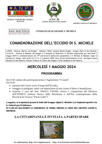 IN CASO DI MALTEMPO LA CERIMONIA SI TERRÀ PRESSO LA SEDE DEL GRUPPO ALPINI S. MICHELE.