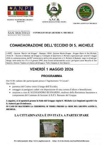 Commemorazione 81° Anniversario dell'Eccidio di S. Michele a S. Michele di Bassano del Grappa - venerdì 1 maggio 2026 alle ore 9:30